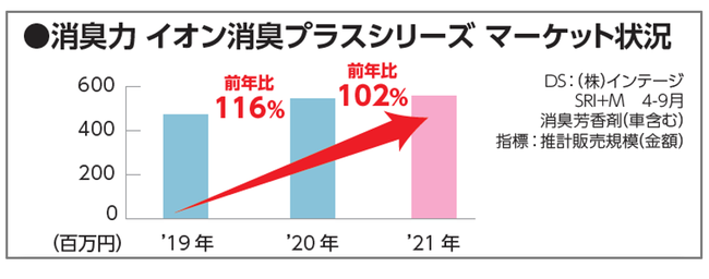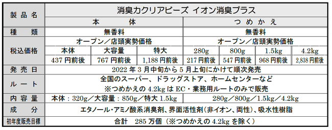 「消臭力 クリアビーズ イオン消臭プラス」は、これまで2019年から20年にかけて116%、20年から21年には102%と伸長し、マーケットを牽引して生活者から支持されてきました。新処方によって消臭効果をアップし、環境に配慮した素材の採用や「つめかえ」の使用を促進していくことにより、さらなる拡大と一層の市場活性化を目指します。