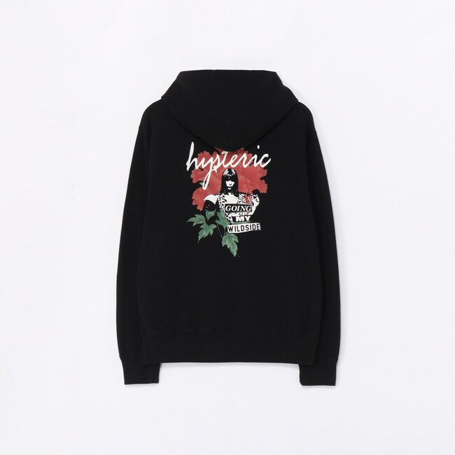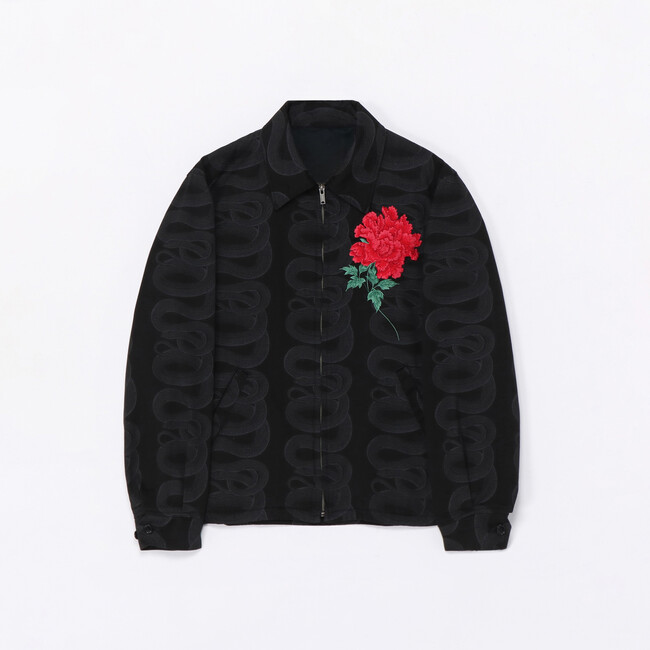 コラボレーション第2弾として、Yohji Yamamoto POUR HOMMEで人気のモチーフ“牡丹”の花にフィーチャーした3アイテムが新たに登場いたします。パンクロックが誕生した1970年代に着想を得て、モノクロ2階調で表現したムチを持った女性と、“牡丹”を重ねたグラフィックのTシャツとフーディー。<HYSTERIC GLAMOUR>の名作と言われるスネークストライプをプリントしたジップアップジャケットの左胸にも、リアルな“牡丹”の花の刺繍を施しています。