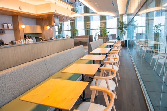 幅広い時間帯で利用出来るラウンジ、オリジナルメニューも展開