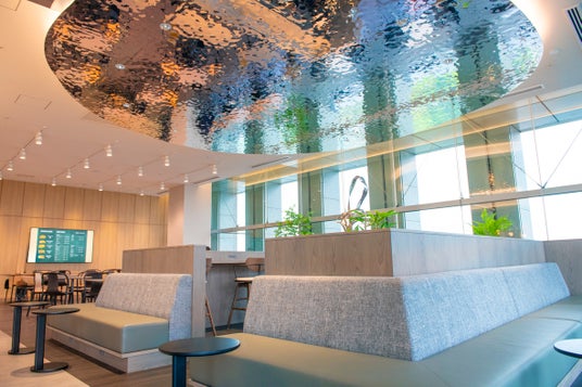 デザイン面では、土地の歴史や自然環境を受け継ぐことを意識し、かつてこの地にあった溜池をイメージした天井デザインを取り入れています。また、ラウンジ中央には動線を設け、その周囲にさまざまなアメニティを配置することで、利用者同士が自然につながり、広がる特別な空間を演出しています。