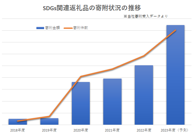 右肩上がりで増え続けるSDGs関連返礼品への寄附