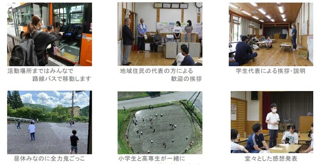 最後の振り返りの時間で参加した小学生に感想を発表してもらうと、「楽しかった!」、「田植えは難しいことがわかった!」など、今回のイベントを大いに楽しみ、また様々な内容を学べたことが伝わってきました。「次も参加したいです!」と言ってくれた小学生も多く、高専生にとっても自分たちで企画した科学工作などがうまく実施できたことが自信につながりました。高専生からは、楽しかったという感想以外にも、「年齢や居住地域が異なる人とイベントに取り組む中で、楽しさと同時に全体の進行の難しさも感じた」、「授業や部活動だけではできない経験ができた」などの声があり、自身の成長に繋がっていると感じた学生もいたようでした。