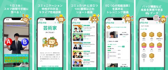 『ahame』は、心理学に基づいた診断と短時間で学べる動画コンテンツを通じて、コミュニケーション力とEQ(心の知能指数)を向上させる個人成長支援サービスです。スキマ時間を活用しながら、職場の人間関係を円滑にするためのヒントを学ぶことができます。本サービスは、『ビリギャル』の著者で指導者の坪田信貴氏、本人の小林さやか氏、そして『ぷよぷよ』『はぁって言うゲーム』の生みの親であるゲームクリエイターの米光一成氏が共同開発・監修を務め、学びを楽しく、継続しやすいものにする工夫が随所に盛り込まれています。