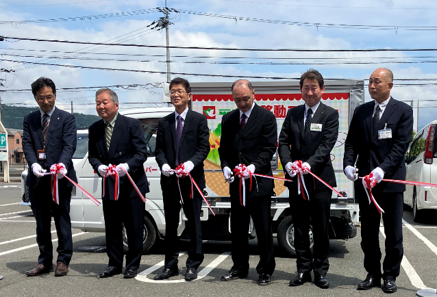 <買い物支援(移動販売)開始にあたり出発式を開催>