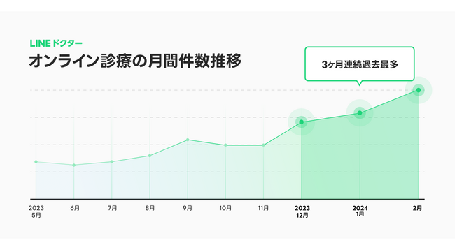 ■2023年12月より2024年2月の3か月連続で過去最多の診療件数を記録!2月は昨年比約2倍に伸長