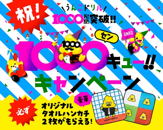 株式会社文響社(本社:東京都港区、代表取締役:山本周嗣)は、2024年9月23日(月)より、「うんこドリル」シリーズの累計発行部数1000万部突破を記念して、ドリルを2冊購入するとオリジナルグッズが必ずもらえるキャンペーンの第3弾「1000(セン)キュー!! キャンペーン」を開催いたします。