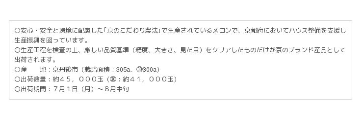 ~気品ある香りと甘み、みずみずしい夏の味覚の京たんごメロン~