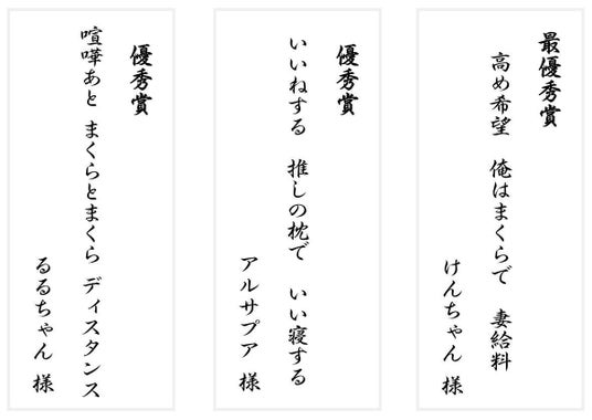 まくら川柳コンテスト2024 最優秀賞1作品、及び優秀賞2作品