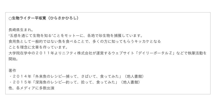 生物ライター平坂寛氏「深海」トークショー
