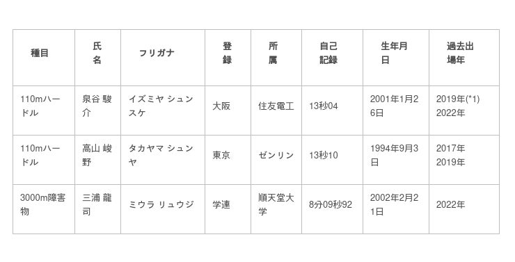 ※8月2日にワールドアスレティックスから出場資格者公表後、8月3日以降に第2次日本代表選手の発表を行う。