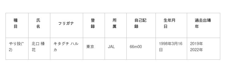(*2)女子やり投の北口榛花は「第57回織田幹雄記念国際陸上競技大会」にて内定。
