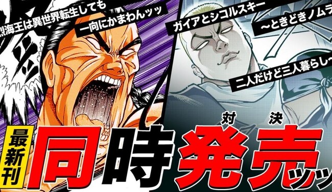 株式会社秋田書店(所在地:東京都千代田区、代表取締役社長:樋口茂)は、格闘バトル漫画の金字塔「刃牙」シリーズの外伝スピンオフ作品2タイトル「バキ外伝 烈海王は異世界転生しても一向にかまわんッッ」7巻・「バキ外伝 ガイアとシコルスキー~ときどきノムラ 二人だけど三人暮らし~」1巻を同時発売する。