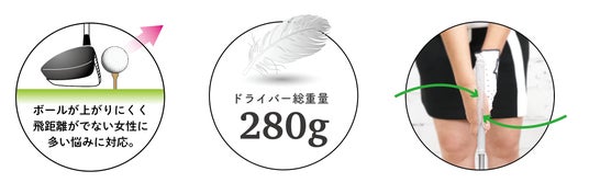 初心者や女性に多い悩みとして、ボールが上がりにくく飛距離が出ない、というものがあります。本ゴルフクラブセットでは、全クラブに共通でボールが上がりやすい設計を施しました。また、ガイド付きのグリップでいつでも同じ位置でグリップできるため、握り方に迷うこともありません。更に、ドライバーの総重量は280gと一般的なものと比較して軽量設計で、振りやすいクラブになるようこだわりました。