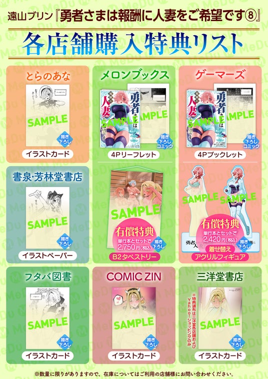 株式会社ジーオーティー(本社:東京都港区、代表取締役:吉永敦仁)はMeDu COMICS レーベルより2026年2月27日にコミックス『勇者さまは報酬に人妻をご希望です(8)』(著:遠山ブリン)を発売いたします。