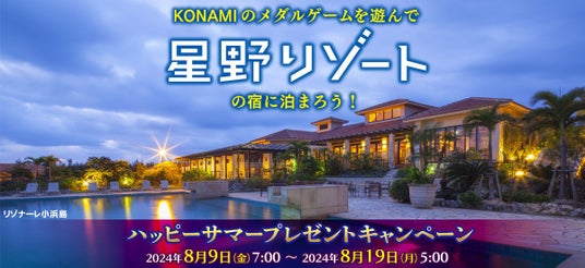 株式会社コナミアミューズメントは、アミューズメント施設向けメダルゲームと、PCやスマートフォンでアーケードゲームが楽しめる「コナステ メダルコーナー」にて「ハッピーサマーキャンペーン」を8月9日(金)から開催することをお知らせします。
