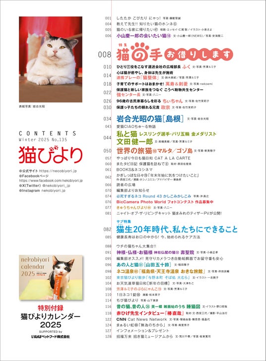 12月12日(木)発売の『猫びより』2025年冬号の巻頭特集は「猫の手お借りします」。ことわざと違い、いろんな場面で人間の役に立ってくれている猫たちが登場します。