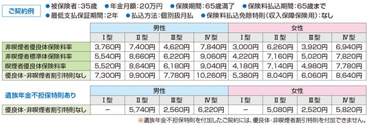 - 死亡保障(遺族年金)の有無をお選びいただけます(I型を除く)。