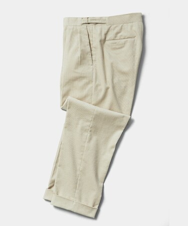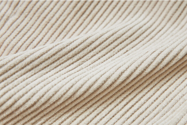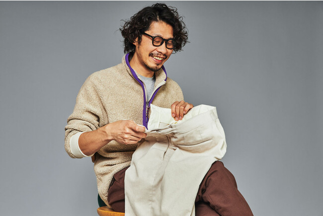 「なぜオフ白?と疑問の声が聞こえてきそうですが、僕なりの狙いがあってセレクトした色味です。スタイリストとして様々なコーデュロイパンツに触れていますが、実は定番的なブラウンやオリーブって、意外と着こなしが難しいんです。トータルでうまくバランスをとらないと、カントリー感が強くなりすぎてしまいがちなんですよね。その点、このようなオフ白はシンプルに合わせるだけで現代的な印象にまとまり、コーディネートが簡単に決まる。これが本作一番の魅力だと思っています」 (四方さん)