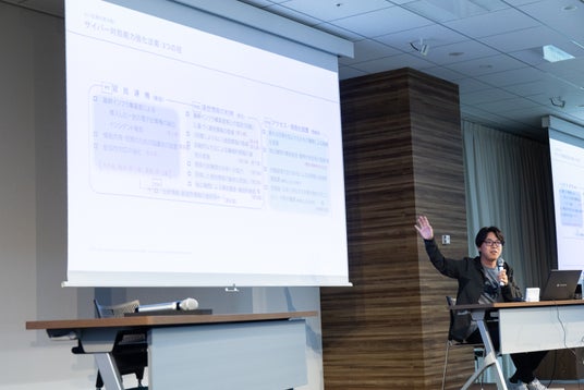 多摩大学大学院客員教授の西尾氏による講演を実施。「能動的サイバー防御(ACD)法案」について、解説された。クラウドやCDN、DNSを経由した通信の偽装やマルウェア開発や侵入済み経路の売買といった“サービス化された攻撃インフラ”の存在によって、従来の防御手段では対応が困難な実態が紹介された。