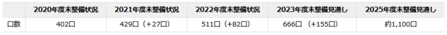 表-1 2022年度整備実績、2023年度整備見通し及び2025年度までの整備見通し(前年度に対する増加口数)