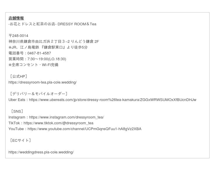 公式HP:https://dressyroom-tea.pla-cole.wedding/