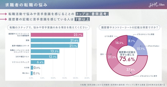SHEはこれまで、女性の理想のキャリアチェンジを支援するスキル習得から実際の仕事の機会まで提供してきました。しかし、未経験領域へのキャリアチェンジに挑戦する場合、これまでの経験やスキルをどう伝えるかが大きなハードルとなっています。特に、職務経歴書や履歴書などの書類作成には時間や心理的負荷がかかり、転職活動のネックに感じる方も少なくありません。