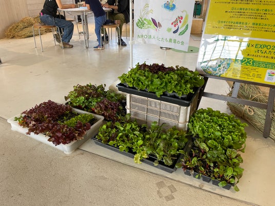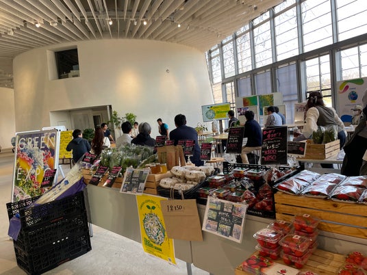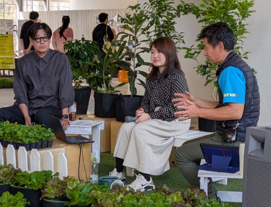 春らしい陽気の中、「GREEN×EXPO 2027」の紹介や、農あるまちについてのトークセッションに合わせて、ミニ畑づくりなどのワークショップや地元立川産の野菜販売が行われました。