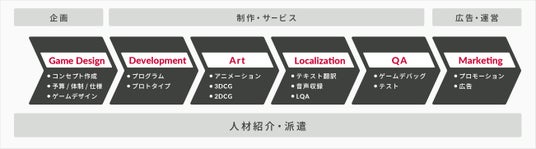 ・事業内容:ゲーム3DCG制作、ゲーム2DCG制作、ゲームデバッグ・テスト、ソフトウェアテスト、撮影・動画制作・動画解析、人材紹介・派遣、ビジネスプロデュース