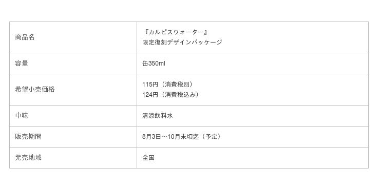 また、「カルピスウォーター」30年間のご愛顧に感謝を込めて、8月3日に『カルピスウォーター』発売30周年限定復刻デザインパッケージを発売します。デザインは1991年発売当時の初代パッケージを忠実に再現しています。パッケージ上部には「カルピスウォーター」30周年ロゴを配し、限定復刻であることを訴求しています。