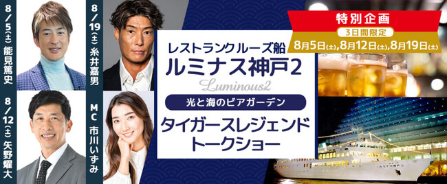 8月毎週土曜!夏のSPECIAL企画「船上のアスリートトークショー」第1弾「タイガース レジェンドトークショー」~トークショー&光と海のビアガーデン~