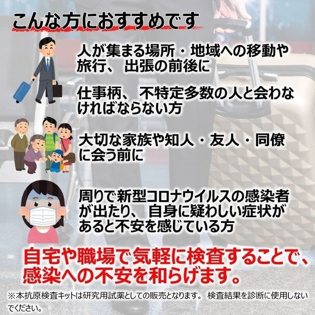 b.新型コロナウイルス感染を疑う症状があると不安を感じている方に対して、感染有無判定の参考として使用してください。抗原テストの結果は、SARS-CoV-2感染の診断や治療の目的として使用しないでください。