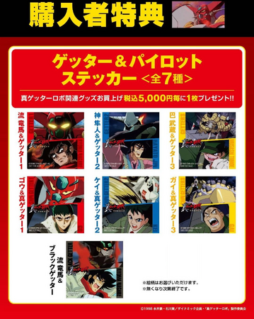主要キャラクターがブラインドステッカーとして登場だ。ゲッターチームや早乙女研究所の面々など、忘れらないメンバーが勢揃い!