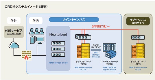 導入にあたっては、大容量データの保管とコストバリューを両立した日本アイ・ビー・エム株式会社(本社:東京都港区虎ノ門、代表取締役社長 山口 明夫)のStorage製品(IBM Storage FlashSystem、IBM Tape製品など)を採用し、ファイル共有システム Nextcloudを組み合わせています。九州大学では、この「QRDM」により、オープンサイエンス実現に向けた第一歩を踏み出しましたが、今後も、研究データ管理・公開ポリシーに則って高度化を進めていく計画です。