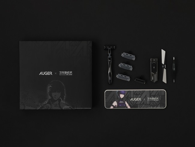 本コラボレーションではAUGER(R)×攻殻機動隊 SAC_2045プレミアム限定セットを数量限定発売。メインキャラクターの草薙素子のイラストが描かれた限定ボックスに、グルーミングツールブランド「AUGER(R)」のカミソリ、カミソリ替刃、ツメキリ、毛抜き、ネイルファイル、さらに本コラボレーション限定の珪藻土トレーが入っています。珪藻土トレーは「攻殻機動隊 SAC_2045」のキャラクターデザインを担当する人気イラストレーター、イリヤ・クブシノブの描きおろしイラストを使ったデザインになっています。