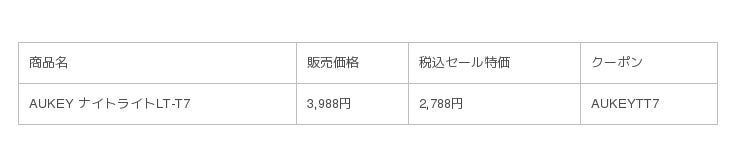 AUKEYは10年以上のハードウェア開発の経験を有し、先端技術を採用し信頼性の高い家電製品とスマートフォン周辺機器を開発・生産しております。AUKEYナイトライトLT-T7(URL:https://amzn.to/2NngsJ9) の30%オフセールをAmazon.co.jpにて開催致します。2/26(火)~2/28(木)までクーポン「AUKEYTT7」を利用することで、2,788円(税込み)でご購入いただけます。