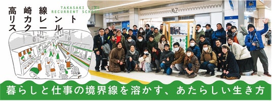 高崎線リカレントスクールは、高崎線沿線を舞台に、地域での実践を通じて学び合い、次の挑戦につなげていくことを目的としたプログラムです。学校では教わらない地域のことや専門分野を、沿線各地を学び舎に見立てながら学びます。これまで、地域に関心を持つ社会人や事業者、プレイヤーなどが参加し、沿線各地でのフィールドワークや対話、実践を重ねてきました。やりたいことを仕事にしたい人、地域で活動したい人、拠点を持ちたい人が集い、お互いにブラッシュアップできる関係性が育まれています。
