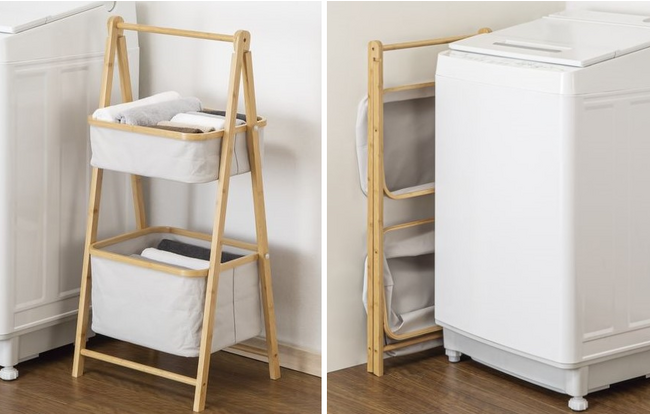 「使わない時にバスケットが邪魔だ」というお客様の声にお応えして、すき間などにサッとしまいやすいラックを開発。環境に配慮したバンブー素材で、軽くて丈夫な仕様です。