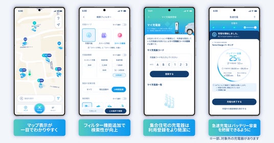 電気自動車(EV)向け充電サービス「Terra Charge(テラチャージ)」を展開するTerra Charge 株式会社(本社:東京都港区、代表取締役社長:徳重徹、以下、当社)は、EV充電アプリ「Terra Charge」において、より快適なユーザー体験の実現を目的にAndroid版をフルリニューアルいたしました。EVユーザーにとってのアプリの使いやすさを追求しより直感的な操作性を目指し、UI/UXの全面刷新を行ないました。