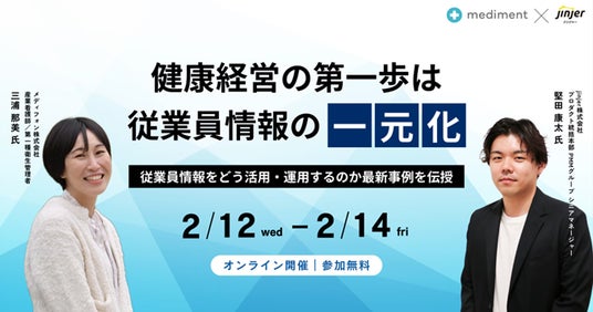 クラウド型人事労務システム「ジンジャー」を提供しているjinjer株式会社(本社:東京都新宿区、代表取締役社長:桑内 孝志 )は、メディフォン株式会社との共催セミナー「健康経営の第一歩は従業員情報の一元化~従業員情報をどう活用・運用するのか最新事例を伝授~」を開催することをお知らせします。