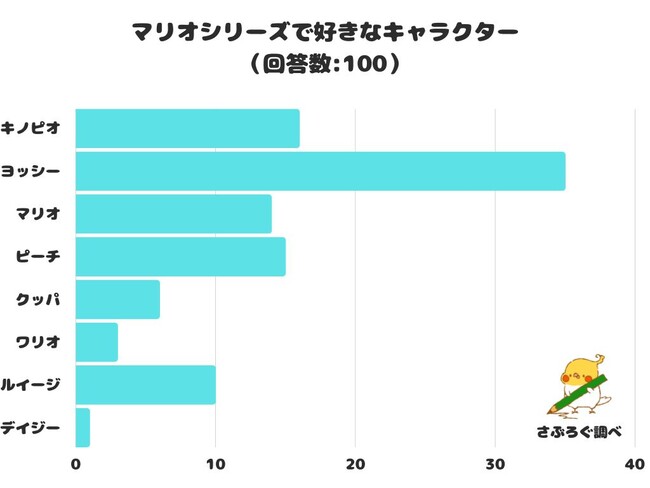 マリオシリーズで好きなキャラクターをアンケートにて調査したところ、1位は「ヨッシー」でした。