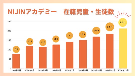 株式会社NIJIN(本社:東京都江東区、代表取締役:星野達郎)が運営する不登校オルタナティブスクール『NIJINアカデミー』は、2024年12月1日現在で入学者数が334名、在籍者数が211名を突破したことをお知らせします。