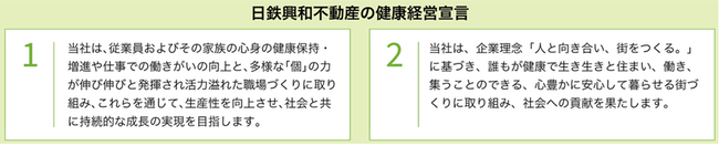 当社は、『日鉄興和不動産の健康経営宣言』を定め、以下の考え方で健康経営に取り組んでいます。