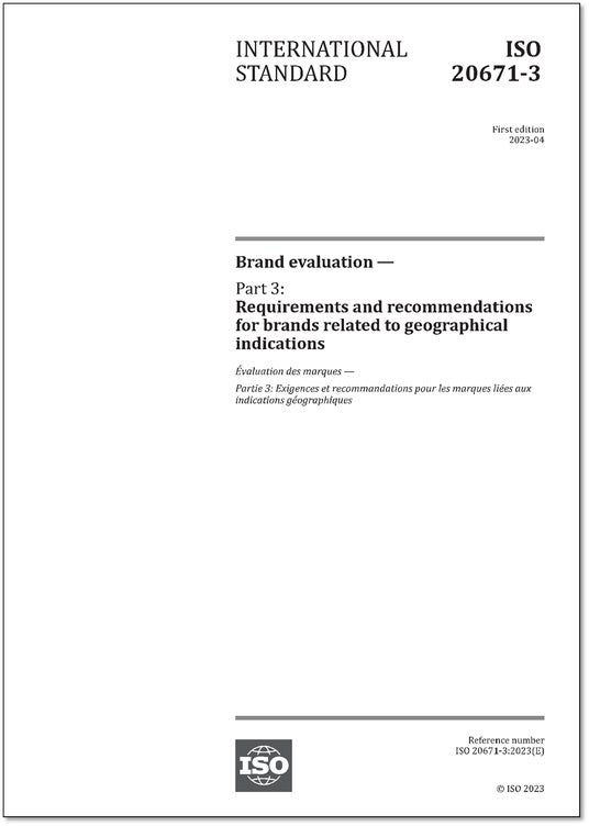 本規格は、ISO 20671-1に基づく方法論により、地理的表示に関連するブランド(BGI)を評価するための方法論、要素及び寸法を含む基礎及び原則について規定しております。ISO 20671-1及びISO 10668と併せて使用することを意図しております。