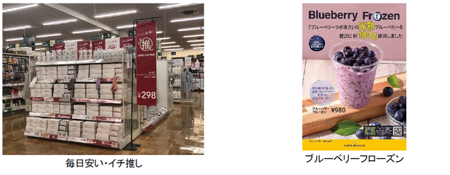 さらに、併設するカフェブリッコでは、手軽に本物の味わいを楽しんでいただくために店内で焼き上げた、しっとりふわふわ食感が楽しめるマフィンを提供するほか、本年7月から一部店舗にて展開しているブルーベリーフローズンも販売します。