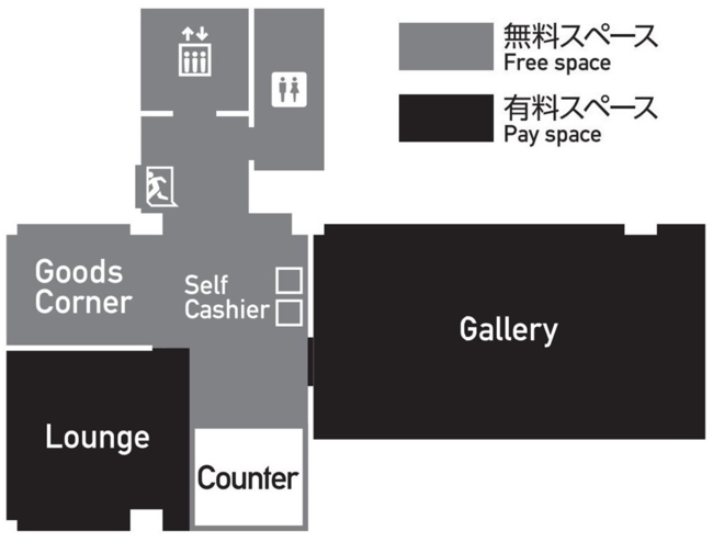 ギャラリー内には高精細複製原画はもちろん、高画質なデジタルサイネージでのイラスト展示等を始め、作品の余韻に浸りながらゆったりお寛ぎいただけるラウンジやグッズコーナーなどを設置し、クリエイターの作品を堪能できる空間をご提供いたします。