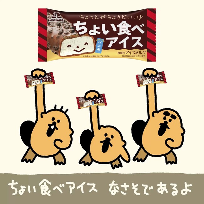 SNSで人気のキャラクター 「ラッコズ」のオリジナル楽曲『ありそでないなさそであるよの歌』をきっかけに、“ありそうでなかった” 「ちょっとだけアイスを食べたい気分」にちょうどいい2~3口サイズのアイスである「ちょい食べアイス」とのコラボレーションが実現しました。Web CM内では、 「ラッコズ」たちが本商品の魅力を、新たに書き下ろされた楽曲『ありそでないなさそうであるアイスの歌』にあわせて紹介します。また、本コラボレーションの一環として、同日よりTwitterで電子ポイント120円分が当たるリツイートキャンペーンも実施いたします。