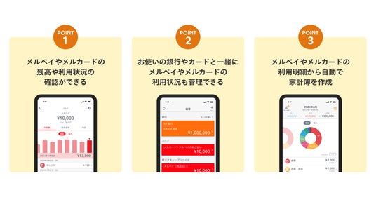 このように、アプリでまとめて簡単に支払い履歴を確認するニーズが高いことから、「メルペイ」および「メルカード」と「マネーフォワード ME」の連携を開始いたします。この連携により、「マネーフォワード ME」アプリ上で、メルペイ残高やメルカリポイント、支払い履歴(※2)を確認することができるようになります。「マネーフォワード ME」との連携によって、お客さまが家計・資産管理をしやすくなり、これまで以上に便利に「メルペイ」や「メルカード」をご利用いただきたいと考えています。