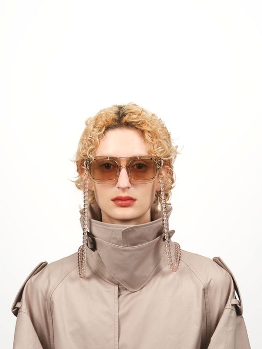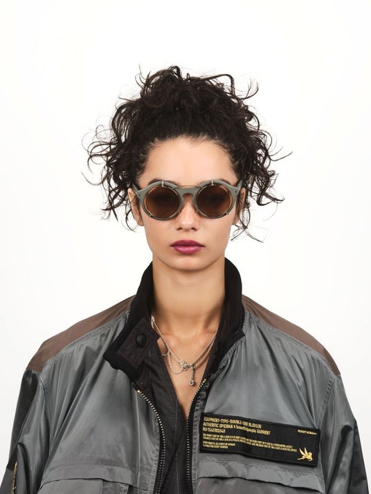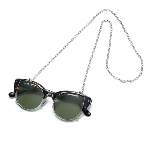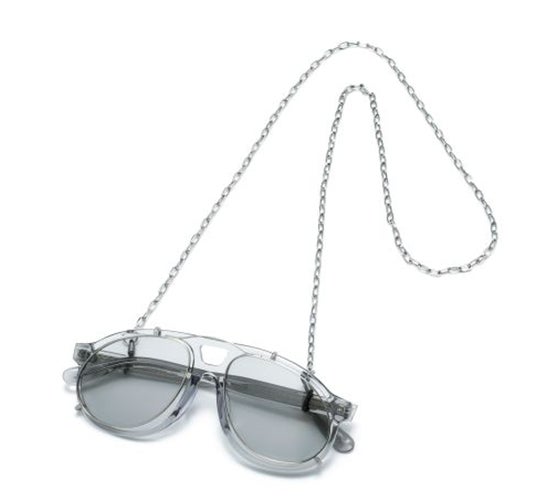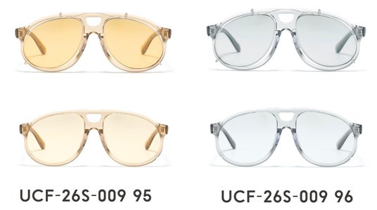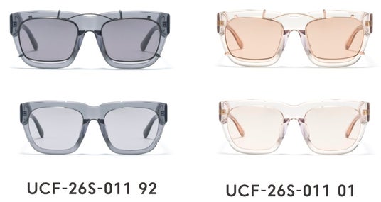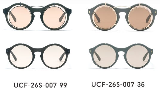 本商品は、「OVER-ENGINEERING」を軸に、サングラスにカラーレンズのクリップオンをあえて組み合わせる「機能の重積」という発想から設計されています 。通常、クリップオンはメガネにサングラス機能を付加するためのものですが、本モデルではサングラス同士を重ねるという、あえて過剰な構成を採用。フレームと形状やサイズが異なるクリップオンを重ねることで生まれる、リムのわずかなズレやカラーレンズの濃淡といった視覚的な変化が、独特の表情と奥行きを与えます。