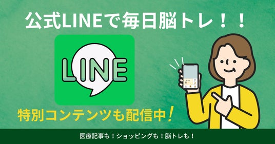 脳活新聞は、LINE公式アカウントをスタートしました。今日の「脳トレ問題」はもちろん、過去の問題にも簡単にチャレンジできます。