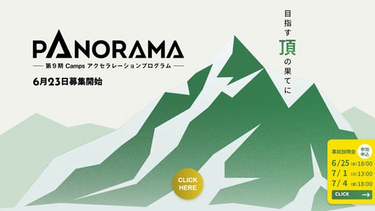 この度、本事業の愛称である「PANORAMA ~第9期Campsアクセラレーションプログラム~」の参加者を募集いたします。